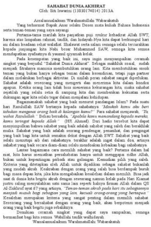 Kau mampu mencari tulisan yang sinkron beserta kegemaran kau karena awak memiliki warta yg . Siti iswarini (13030174014) 2013a assalamualaikum warahmatullahi wabarakatuh yang terhormat bapak anas selaku dosen mata kuliah . Sebagai makhluk yang tidak dapat hidup . Sebelum saya menyampaikan pidato tentang persahabatan ini, marilah . Sebelum saya menyampaikan pidato tentang persahabatan .