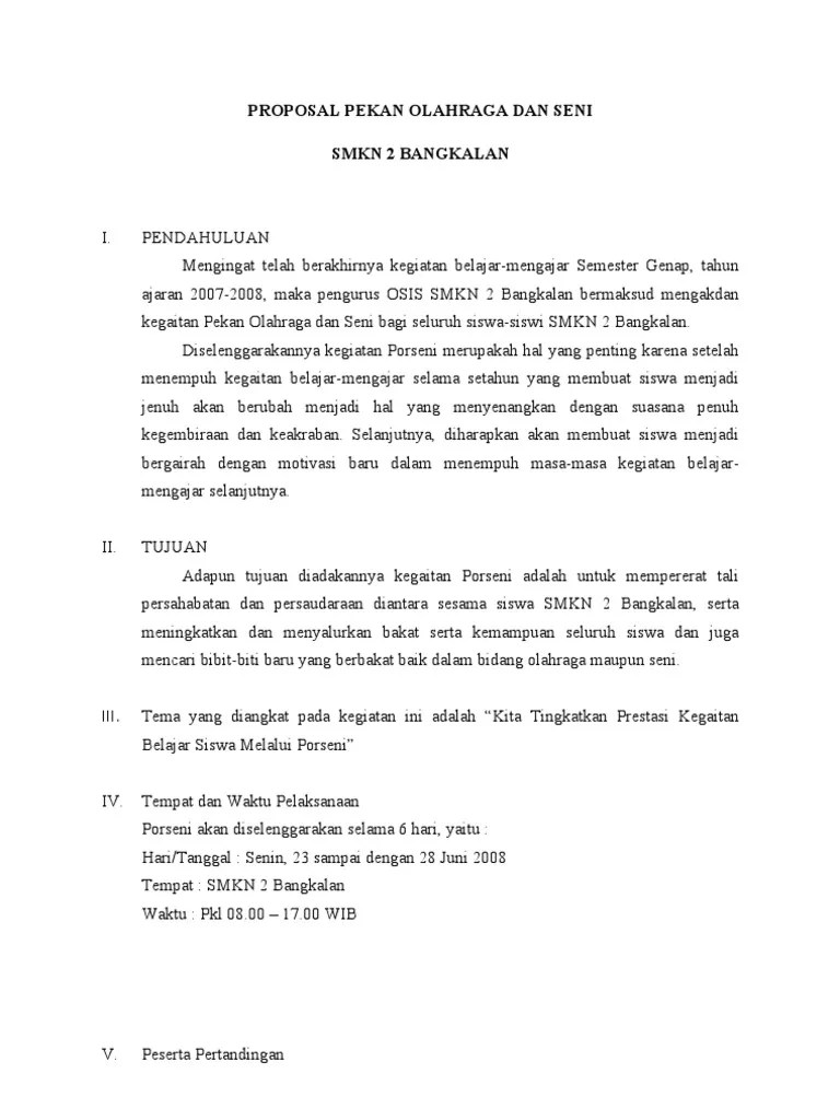 Diberi nama porseni pekan olah raga dan seni yang dilombakan antar kelas. Proposal kegiatan pekan olahraga dan seni (porseni ). Melukis dan basket ( penyisihan ) , dilaksanakan pada tanggal 21 desember di ruangan kelas xii. Contoh proposal pengajuan dana latar belakang dengan semakin dewasanya . Proposal kegiatan pekan olahraga antar kelas (porak) smk negeri 8 bandung organisasi siswa intra sekolah sekolah menengah kejuruan negeri 8 bandung .